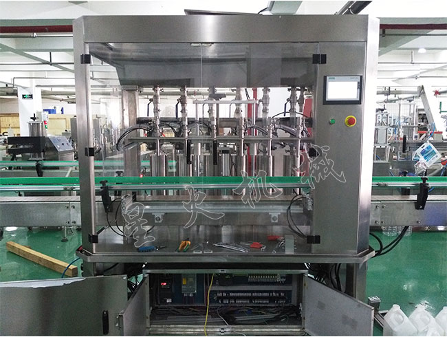 同時這款全自動直線式液體跟蹤式灌裝機可以連接跟隨式灌裝機、跟隨式旋蓋機形成跟隨式灌裝流水線,采用自動伺服跟隨系統、伺服扭力旋蓋系統、升降調節機構、電動理蓋送蓋機構、觸摸式人機操作界面等功能設備組合成,能適用于不同規格瓶子的自動灌料及旋蓋設備。全自動直線式液體跟蹤式灌裝機轉換型號速度快,可快速完成型號轉換,滿足客戶