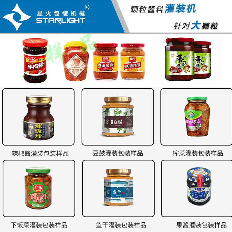 香菇肉醬灌裝機灌裝機幾乎能夠灌裝所有醬類、醬料物體是該款老干媽辣椒醬灌裝機的優勢,包括大塊肉醬、顆粒醬、濃醬、豆瓣醬、甜面醬、辣椒醬等。全自動香菇肉醬灌裝機在質量方面的表現有著不俗的表現,為人們的生活帶來了不可替代的作用,更是一直被消費者所信賴,為人們的生活做出巨大貢獻的香菇肉醬自動灌裝機技術不斷的變革,優勢也是在不斷的凸顯。如果您有需要,可以聯系我們星火,歡迎來廠試機。