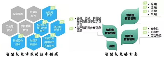 何為智能包裝?智能包裝,指通過創新思維,在包裝中加入了更多機械、電氣、電子和化學性能的等新技術,使其既具有通用的包裝功能,又具有一些特殊的性能,以滿足商品的特殊要求和特殊的環境條件。智能包裝分為功能性材料智能包裝、結構性智能包裝、信息型智能包裝,其中又涉及到保鮮技術、水溶膜包裝技術、二維碼技術、包裝性與結構創新技術、便攜包裝技術、紋理防偽技術、磁共振射頻防偽識別技術、食品安全溯源方案技術等。