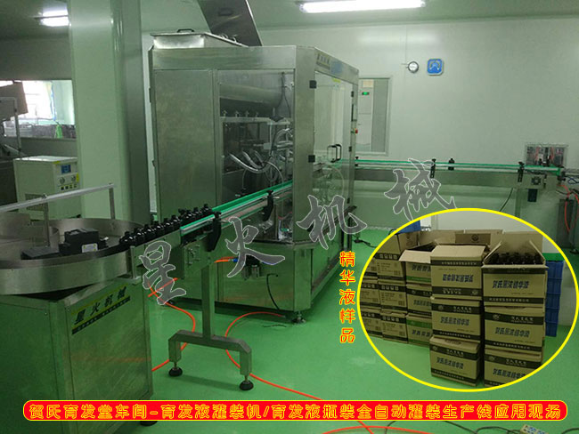 近日,賀氏育發堂從我司訂購了一條由理瓶機、育發液灌裝機、自動上蓋旋蓋機、自動貼標機等設備所構成的育發液瓶裝全自動灌裝生產線,用于其旗下產品:精華液、育發液、養發液、防脫液、護發液等瓶裝的灌裝生產。在經過我司技術人員的調試安裝后,現育發液瓶裝全自動灌裝生產線已經在客戶車間投入使用,生產效率提升顯著,獲得了客戶的認可!