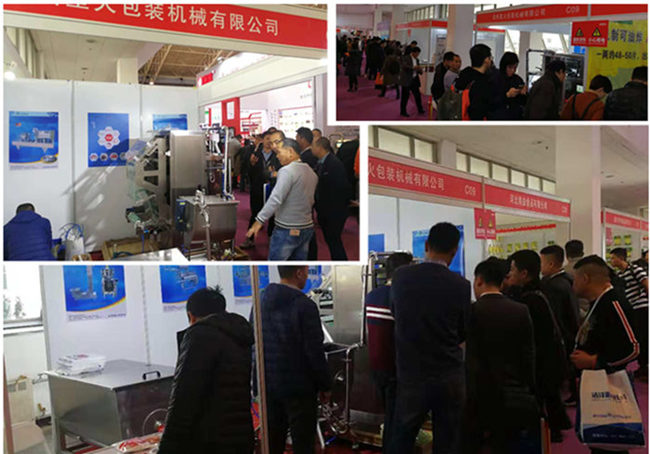 星火灌裝機展位所展示的設備以及包裝樣品令眾多參展人員贊不絕口,對火鍋底料包裝品質、灌裝效果給予肯定,場面一度異;鸨!