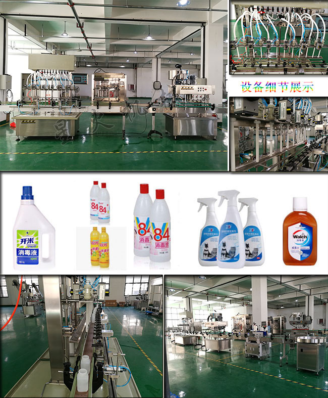 南京星火全自動防腐蝕液體灌裝設(shè)備車間展示及防腐蝕液體自動灌裝機(jī)灌裝樣品