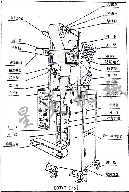 容積式粉劑包裝機設計線稿以及結構示意圖:
