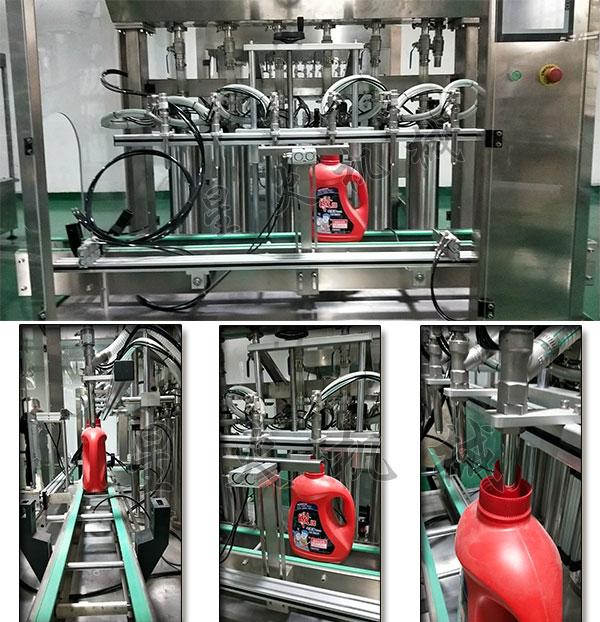 星火全自動洗衣液灌裝流水線廠家廠房展示洗衣液自動化灌裝流水線灌裝細節(jié)