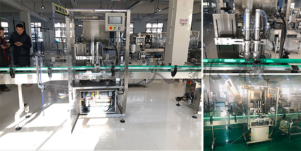 3、該設備配置兩個灌裝頭,同步工作,效率高,醬料可均勻地被擠壓灌裝到容器里。