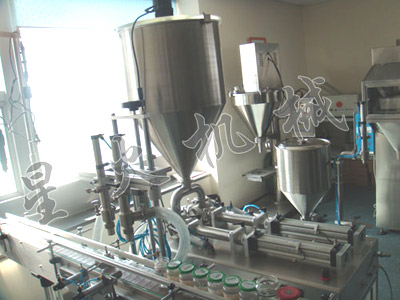 雙頭牛肉醬自動灌裝機目前在國內屬于比較先進的灌裝機產品,他的產生解決了以前香辣醬廠家需要大量人力才能完成灌裝的難題,并且提高了產品的灌裝精度,該機和物料接觸部位全部采用316L高級不銹鋼制成、動力使用臺灣亞德客氣缸推動、整機干凈大方、動力強勁,使星火公司很多客戶順利解決了ISO2000和QS認證。