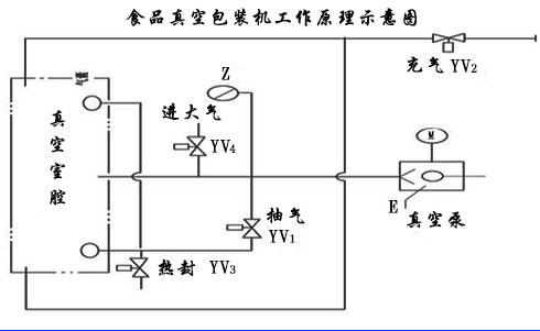 真空食品包裝機的工作原理:簡單來說就是該包裝機是通過抽氣嘴放到被包裝物的包裝袋內,抽空空氣,預定真空度后,再充入氮氣或其它混合氣體,然后完成封口工序。