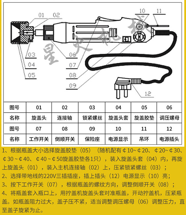 電動(dòng)手持旋蓋機(jī)旋蓋頭組裝或更換演示: