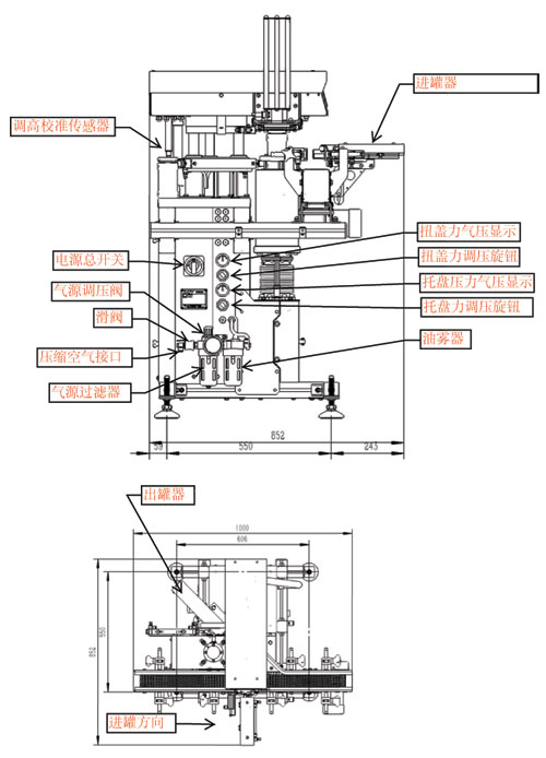 XH30K型全自動(dòng)旋開(kāi)蓋真空旋蓋機(jī)(玻璃瓶專用),是一款以電氣程序控制和氣動(dòng)驅(qū)動(dòng)實(shí)現(xiàn)運(yùn)轉(zhuǎn)為主的設(shè)備。和傳統(tǒng)機(jī)械傳動(dòng)設(shè)備不同的是,采用氣缸作為主要的動(dòng)力原件,各動(dòng)作原件通過(guò)編程控制器協(xié)調(diào)動(dòng)作,應(yīng)用數(shù)目較多的傳感器檢測(cè)瓶子、蓋子和設(shè)備上的動(dòng)作部件。